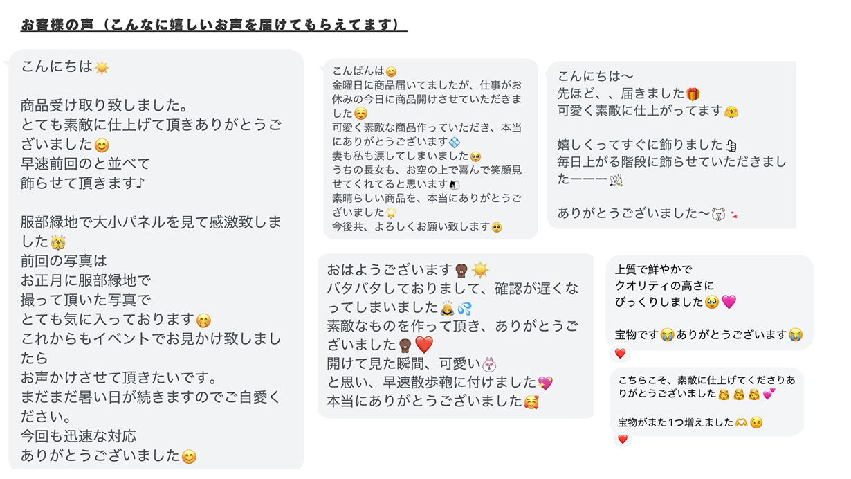 「思い出を形に」する価値提供型のオリジナル商品たち。これまでに多くのお客様から喜びの声が届いています。