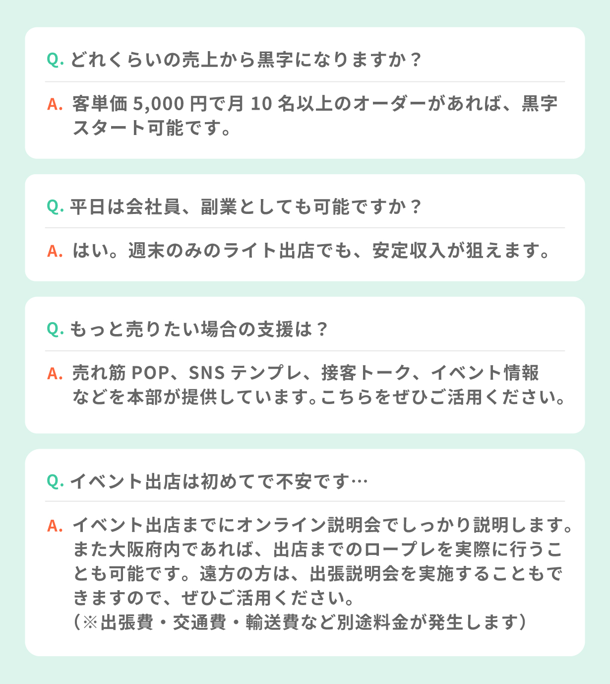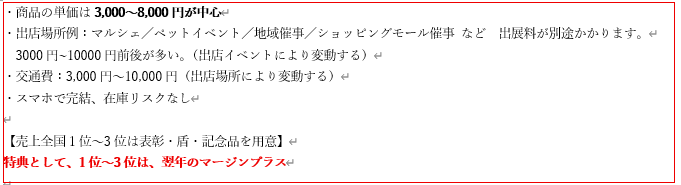 加盟店は、月2回の出店でも経費を差し引き、手取りで2万円~10万円以上を狙えます。