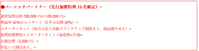 また利益率については、本プロジェクトからスタートした加盟店は初年度は45%、2年目からは50%とこちらも高いのが特徴です。